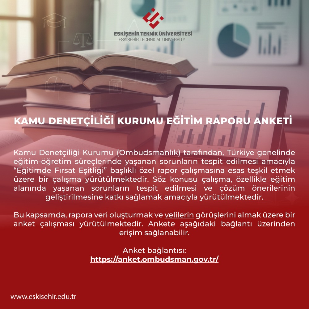Kamu Denetçiliği Kurumu (Ombudsmanlık) tarafından, Türkiye genelinde eğitim-öğretim süreçlerinde yaşanan sorunların tespit edilmesi amacıyla “Eğitimde Fırsat Eşitliği” başlıklı özel rapor çalışmasına esas teşkil etmek üzere bir çalışma yürütülmektedir. Söz konusu çalışma, özellikle eğitim alanında yaşanan sorunların tespit edilmesi ve çözüm önerilerinin geliştirilmesine katkı sağlamak amacıyla yürütülmektedir.