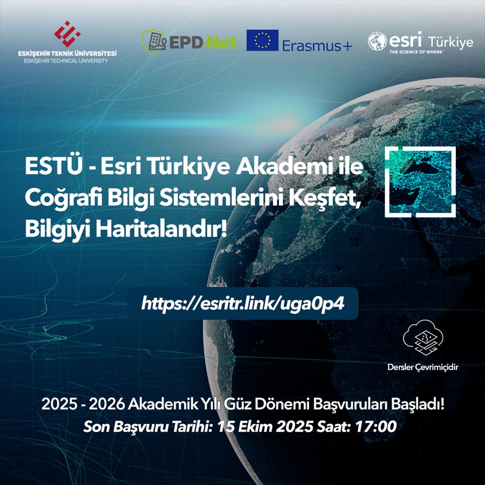 Eskişehir Teknik Üniversitesi ve Esri Türkiye iş birliğiyle, EPD-Net projesi kapsamında düzenlenen Esri Türkiye Akademi Programı başvuruları başlamıştır.