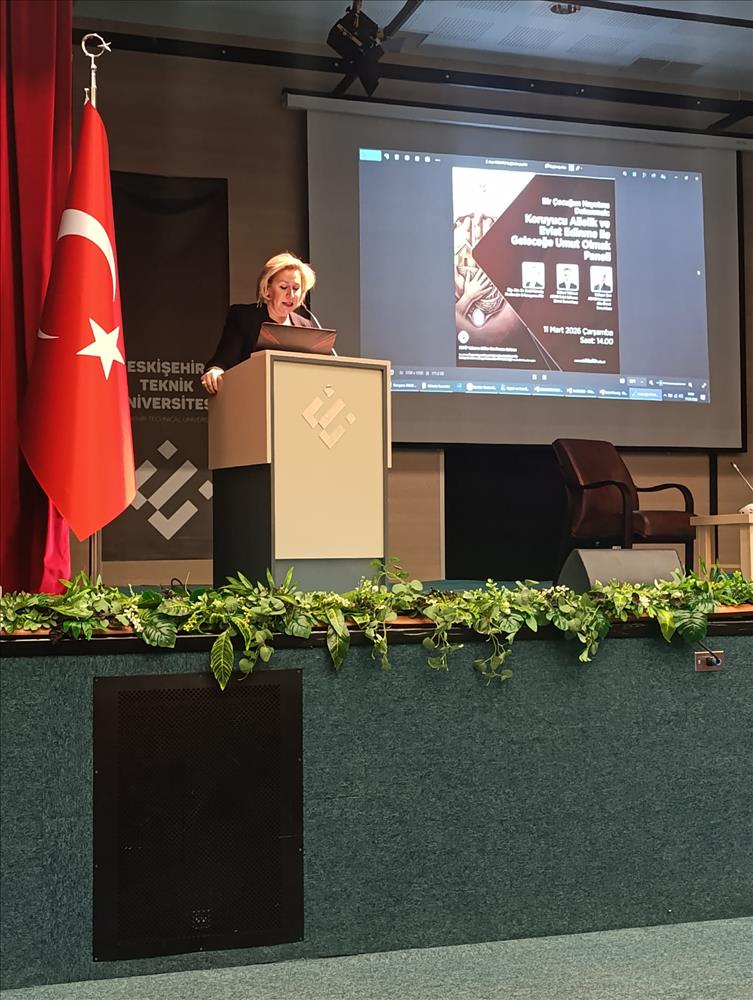 Panelin bir diğer konuşmacısı olan Eskişehir Aile ve Sosyal Hizmetler İl Müdürlüğü Koruyucu Aile Birim Sorumlusu Gökçen Şen ise koruyucu aile sisteminin işleyişi, başvuru süreçleri ve koruyucu aileliğin çocukların gelişimi üzerindeki olumlu etkileri hakkında katılımcılara bilgi verdi. Şen, koruyucu aileliğin çocukların kurum bakımına alternatif olarak aile ortamında büyümelerine olanak sağlayan önemli bir sosyal destek modeli olduğunu vurguladı.
