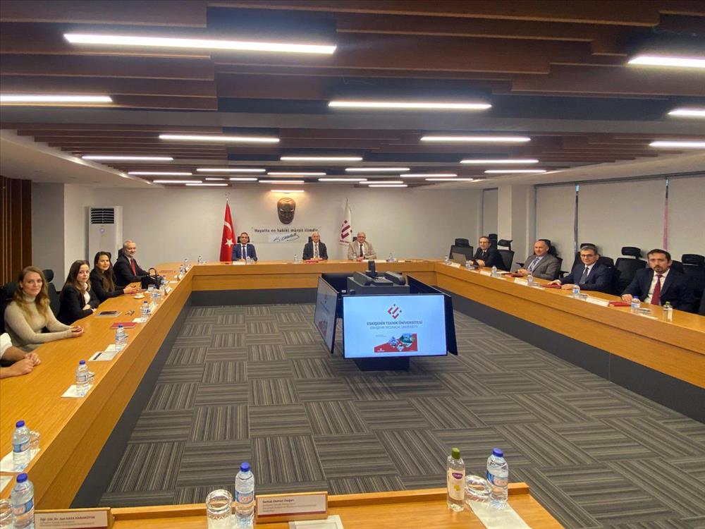 Eskişehir Teknik Üniversitesi Dış Danışma Kurulu toplantısı, 29 Aralık 2025 Pazartesi günü Rektörlük Senato Salonunda gerçekleştirildi. Toplantıya, Eskişehir Teknik Üniversitesi adına ev sahipliğini yapan Rektör Prof. Dr. Adnan ÖZCAN’ın yanı sıra Rektör Yardımcıları Prof. Dr. Onur KAYA, Prof. Dr. Yunus ÖZDEMİR ve Prof. Dr. Hanife APAYDIN ÖZKAN, Genel Sekreter Cengiz KAÇAL, Kurumsal Gelişim ve Planlama Koordinatör Yardımcısı Öğr. Gör. Dr. Aslı Kaya KARAKÜTÜK, İstatistikçi Serhat Osman DOĞAN ile Dış Danışma Kurulu Üyeleri; Eskişehir OSB Başkanı Nadir KÜPELİ, Eskişehir Osmangazi Üniversitesi Rektör Yardımcısı Prof. Dr. Hakan DEMİRAL, KOSGEB Eskişehir İl Müdürü Tarık YILMAZ, Elektrik Mühendisleri Odası Şube Başkanı Ahmet ŞAKAR, Anadolu Üniversitesi BİBAM Müdürü Prof. Dr. Temel ÖZEK, TEI Mühendislik Genel Müdür Yardımcısı Ahmet FINDIK ve Beko Global Baş Mühendisi Ceren Irmak KARAMEŞE katıldı.