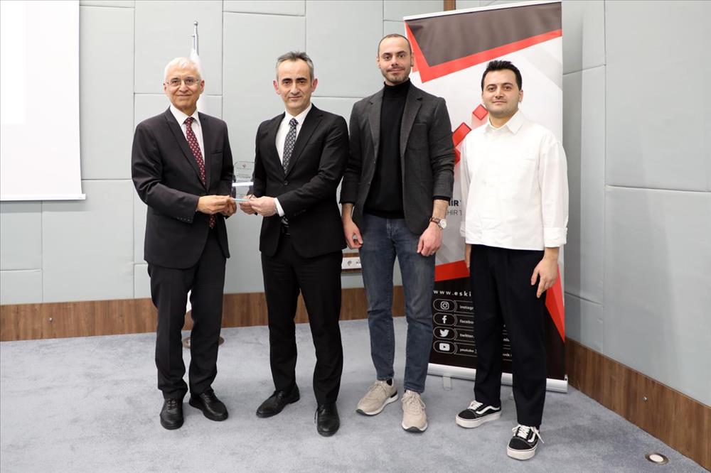 Program, ESTÜ Akademi Programları paydaşlarına plaket takdimi ile devam etti. Programa katkı sunan firma temsilcilerine ve akademisyenlere plaketleri, Rektör Prof. Dr. ÖZCAN tarafından takdim edildi.