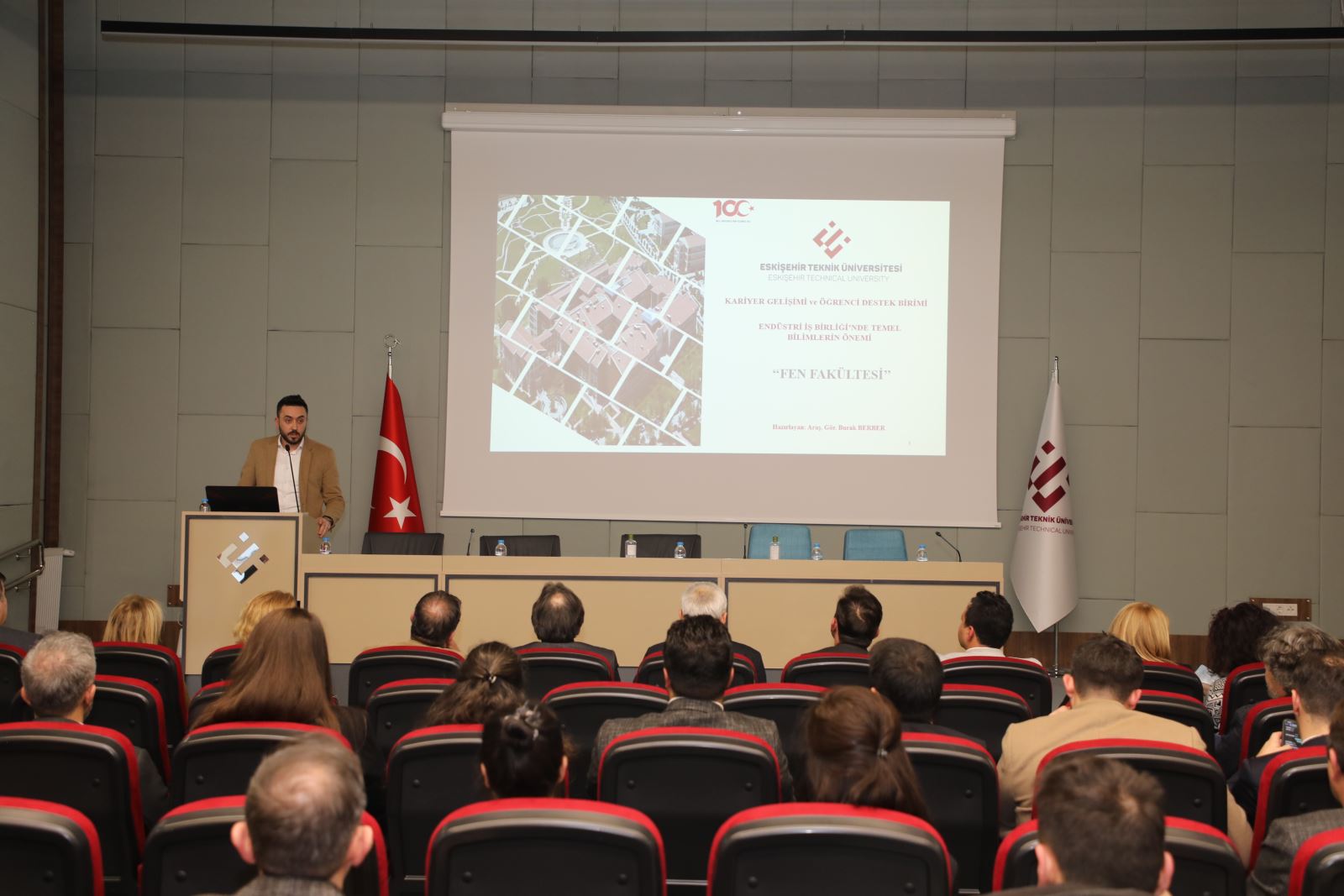 Açılış konuşmalarının ardından 2023 yılı program değerlendirmeleri sunumu Kariyer Gelişimi ve Öğrenci Destek Birimi Müdür Yardımcısı Öğr. Gör. Sayın Nazan GÜL ve Akademi Programları Koordinatörü Arş. Gör. Sayın Orkun ERGÜRHAN tarafından gerçekleştirildi. GÜL, Akademi programlarının gelişimini ve sektörle kurulan sağlam ilişkilerin getirdiği sonuçları, öğrenci ve sektör temsilcilerinin programa gösterdiği büyüyen ilgiyi anlatırken, ERGÜRHAN 2023 yılında gerçekleştirilen akademi programlarıyla ilgili sayısal bilgiler verdi. Ardından Arş. Gör. Sayın Burak BERBER tarafından temel bilimler içerikli bir sunum yapılırken; temel bilimler alanında sektörle yapılabilecek çalışmalar ve ESTÜ’nün temel bilimler alanında son derece değerli insan kaynağı ve güçlü laboratuvar alt yapısına vurgu yapıldı.