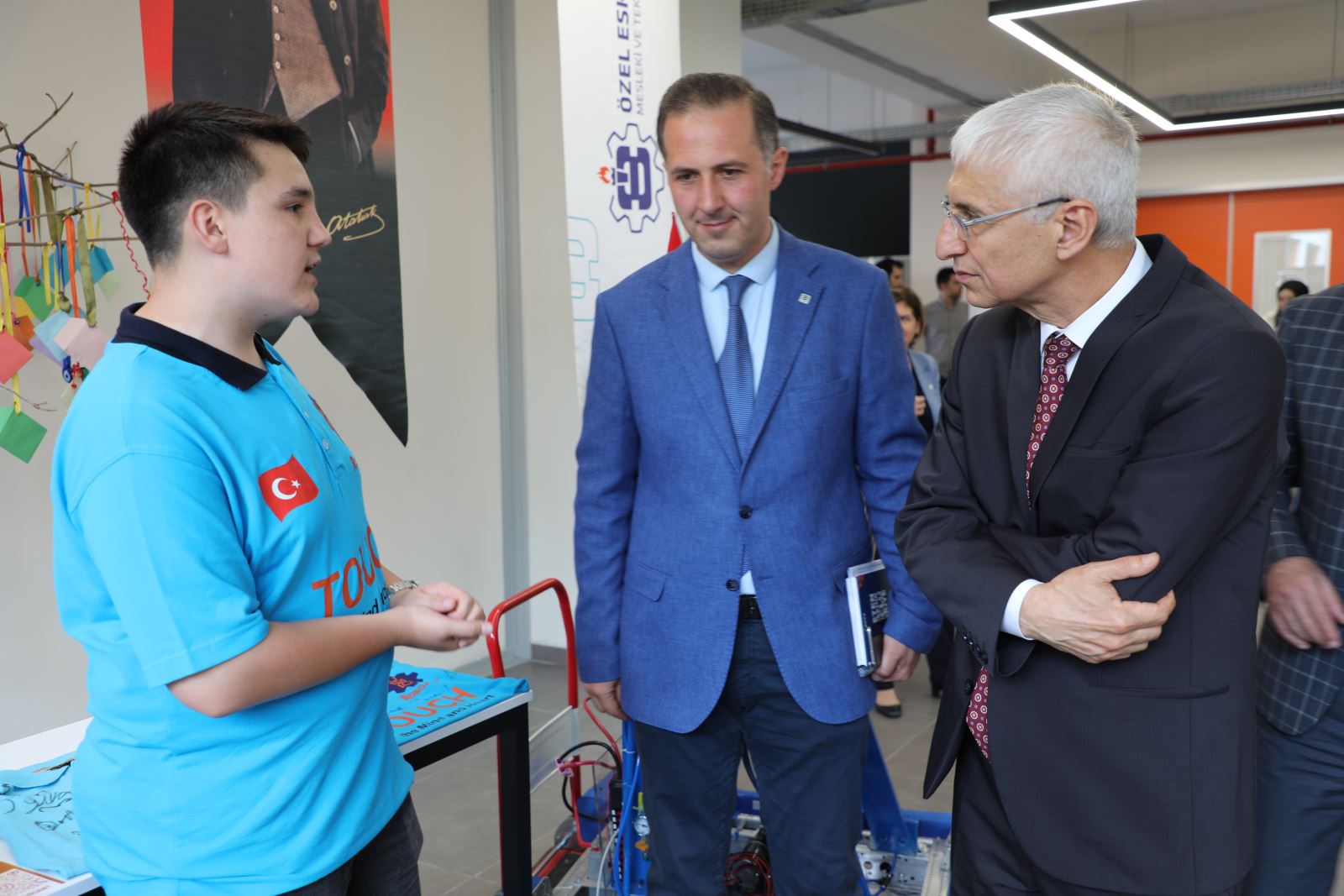 Eskişehir Teknik Üniversitesi Mühendislik Fakültesi 16. Proje Fuarı ve Yarışması, Özel Eskişehir OSB Mesleki ve Teknik Anadolu Lisesinde gerçekleştirildi. 30 Mayıs 2023 Salı günü düzenlenen etkinliğe Rektör Prof. Dr. Sayın Adnan ÖZCAN, Rektör Yardımcıları Prof. Dr. Sayın Yunus Özdemir, Prof. Dr. Sayın Onur KAYA, Mühendislik Fakültesi Dekanı Prof. Dr. Sayın Hanife APAYDIN ÖZKAN, Eskişehir Organize Sanayi Bölgesi (EOSB) Yönetim Kurulu Başkan Vekili Sayın Metin SARAÇ, Seramik Araştırma Merkezi Yönetim Kurulu Başkanı Prof. Dr. Sayın Servet TURAN, ARİNKOM TTO Müdürü Prof. Dr. Sayın Hasan Murat ERTUĞRUL, MDA İleri Teknoloji Seramik AŞ. Müdürü Sayın Alpagut KARA, öğretim elemanları, sektör temsilcileri ve öğrenciler katıldı.
