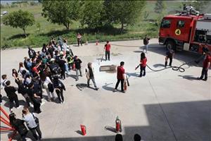 Eskişehir Teknik Üniversitesi Ulaştırma Meslek Yüksekokulu (UMYO) Sivil Havacılık Kabin Hizmetleri programı son sınıf öğrencileri, 2 Eylül Kampüsünde düzenlenen Yangın Söndürme Sertifika Eğitimine katıldı.
