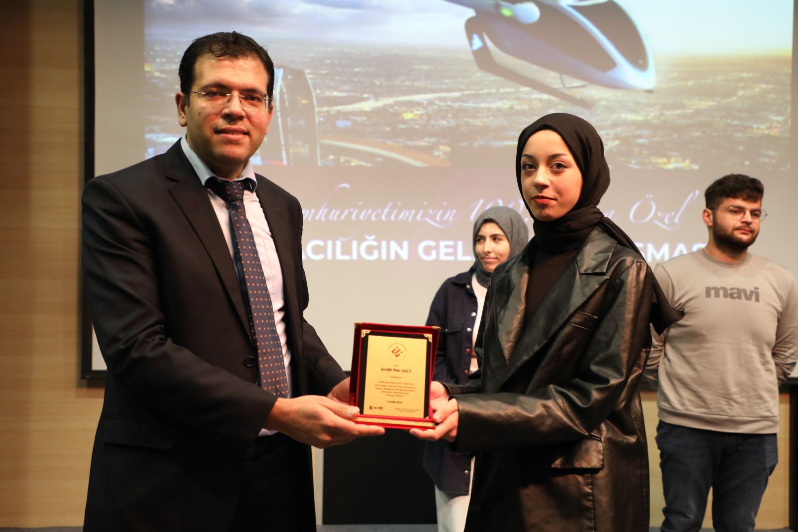 Açılış konuşmalarının ardından Boeing firmasının destekleri ile ESTÜ tarafından havacılık sektörünün geleceği için yenilikçi fikirler geliştirmeyi teşvik etmek amacıyla düzenlenen “Havacılığın Geleceği” isimli proje yarışmasında dereceye girenlere ödülleri verildi.