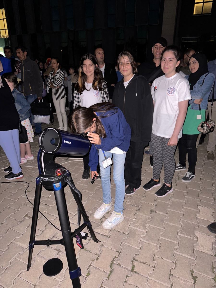 Yoğun ilgi gören ve yaklaşık 4 saat süren etkinlikte, öğrenci ve veliler Ay’ın farklı yüzünü bilimin ışığı ile aydınlattılar.