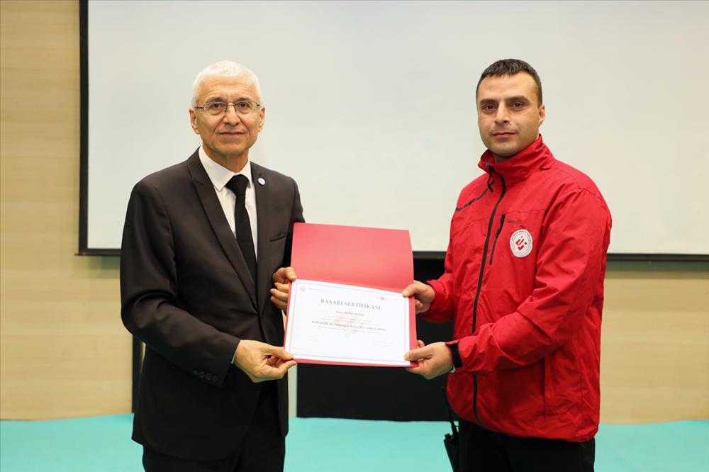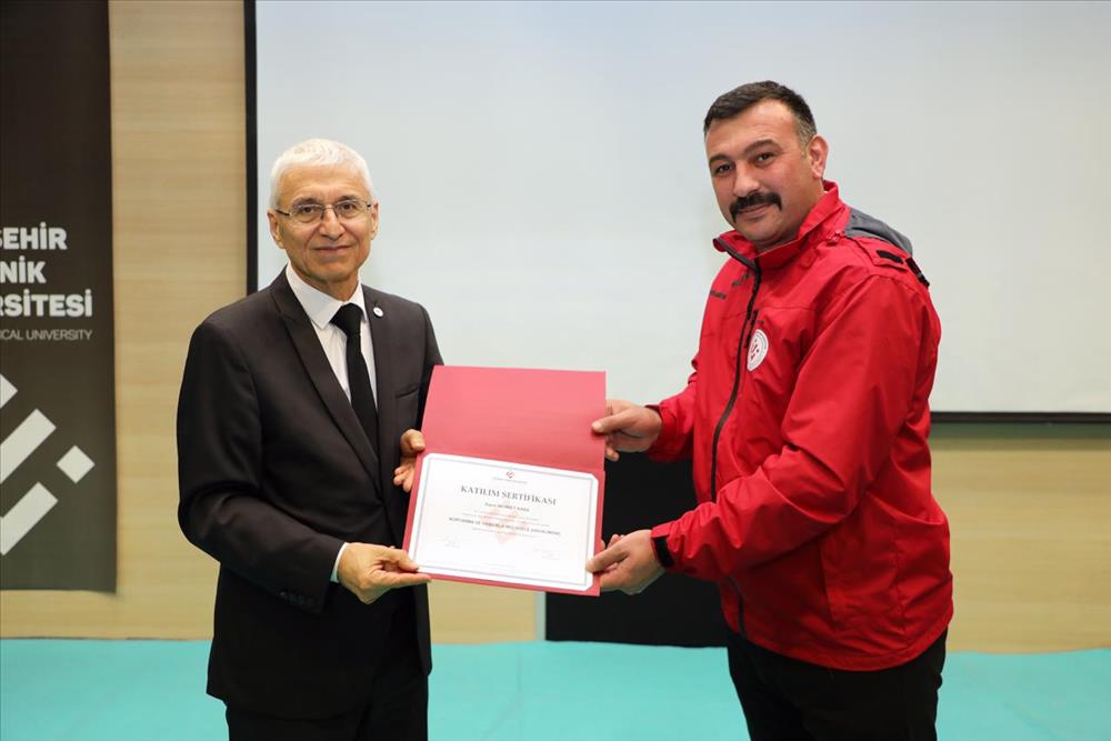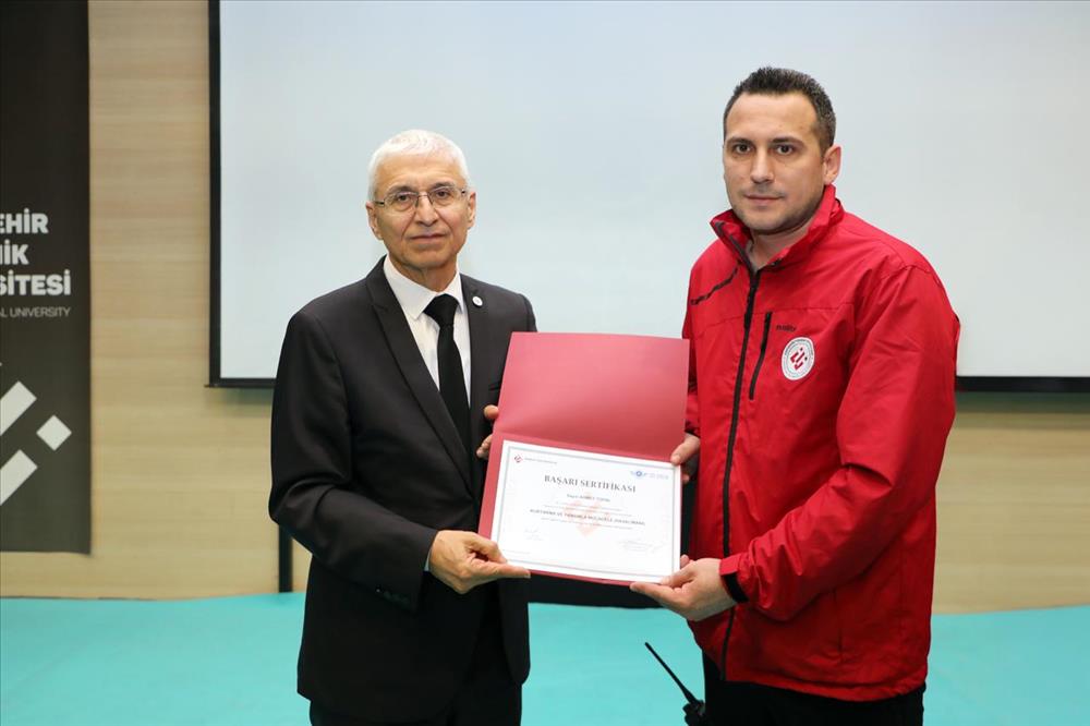 Gösterimin ardından düzenlenen törende ESTÜ Rektörü Prof. Dr. Adnan ÖZCAN, üniversitenin arama-kurtarma kapasitesini güçlendirmek amacıyla gerçekleştirilen eğitimleri tamamlayan personele sertifikalarını verdi. Ekip üyeleri, uluslararası mevzuat çerçevesinde düzenlenen Havaalanlarında Acil Durumlar, Kurtarma ve Yangınla Mücadele Temel Eğitimini başarıyla tamamlayarak yetkinliklerini belgeledi.