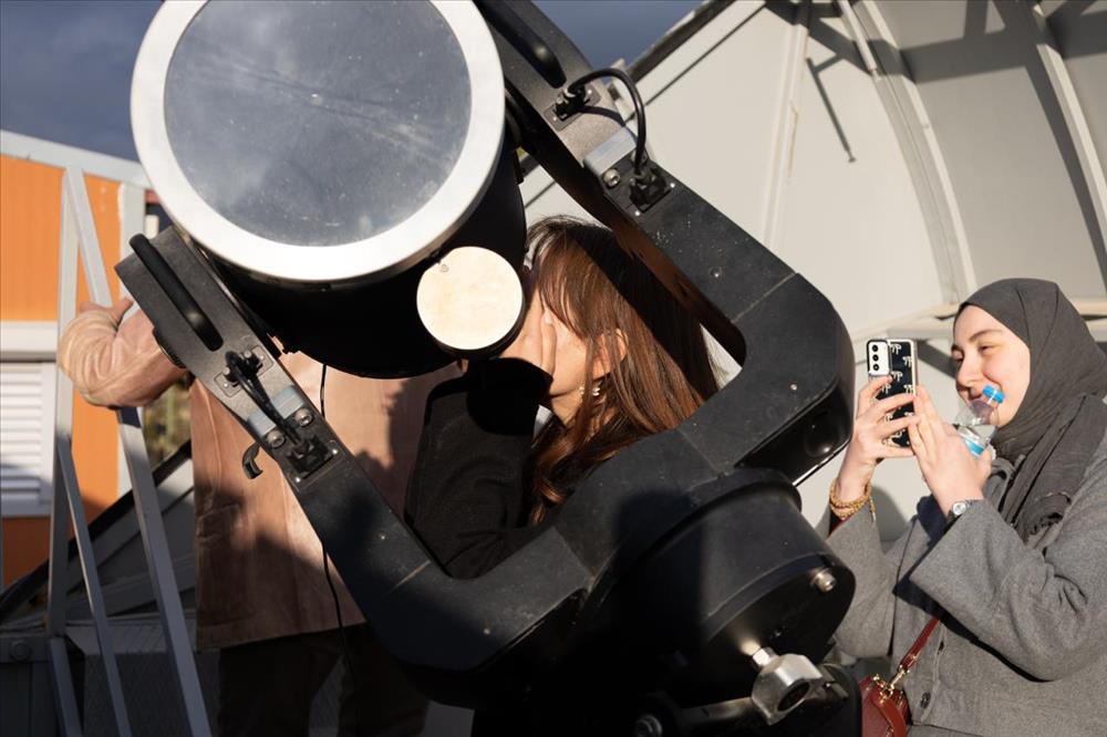 Ziyaretin son bölümünde ise Eğitim Laboratuvarında bulunan 30 cm ayna çaplı teleskopla, Dünya’ya en yakın yıldız olan Güneş gözlemi gerçekleştirildi. Teleskop başında yapılan sohbette, öğrencilerin güneşe ve genel olarak uzay bilimlerine yönelik merak ettikleri sorular üzerinden beyin fırtınası yapıldı.