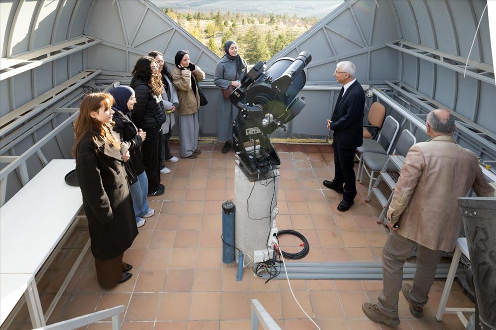 Ziyaretin devamında, 60 cm ayna çaplı teleskop ile yapılan yıldız tayfı analizlerinin nasıl gerçekleştirildiği 6,5 metrelik teleskop kubbesi içerisinde uygulamalı olarak gösterildi. Bu aşamada hem teleskopun teknik özellikleri hem de kubbenin yapısal bileşenleri ve çalışma prensipleri öğrencilere detaylı biçimde aktarıldı.