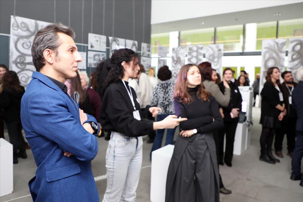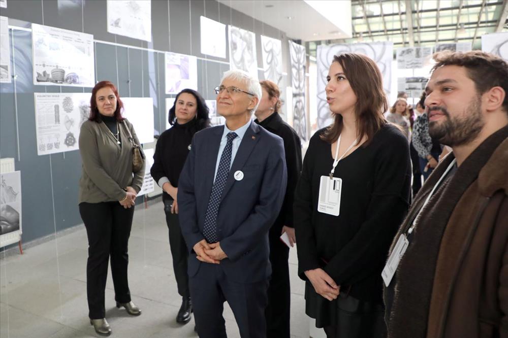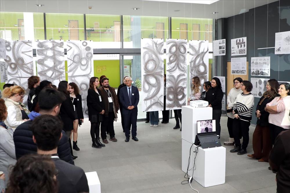 Eskişehir Teknik Üniversitesi Mimarlık ve Tasarım Fakültesi Mimarlık Bölümü öğretim elemanları Öğr. Gör. Efe YILDIRIM ve Araş. Gör. Dr. Gamze ŞENSOY TORUN tarafından düzenlenen “Of the Moment, Beyond It / Anın İçinden, Onun Ötesine” başlıklı serginin açılışı gerçekleştirildi. 12 Ocak 2026 Pazartesi günü Yabancı Diller Yüksekokulu Fuaye Alanında gerçekleştirilen açılışa Eskişehir Teknik Üniversitesi Rektörü Prof. Dr. Adnan ÖZCAN, Mimarlık ve Tasarım Fakültesi Dekanı Prof. Dr. Berna ÜSTÜN, Mimarlık Bölümü Başkanı Prof. Dr. Hicran Hanım HALAÇ’ın yanı sıra öğretim elemanları ve öğrenciler katıldı.