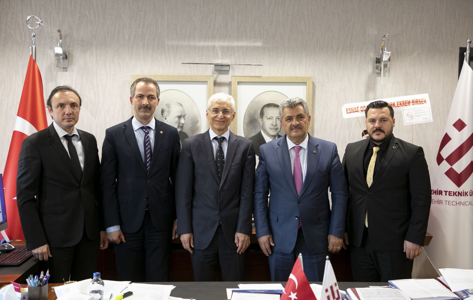 Esnaf ve Sanatkârlar Odası Başkanı Sayın Ekrem Birsen ve Yönetim Kurulu üyeleri, Eskişehir Teknik Üniversitesi Rektörlüğüne atanan Prof. Dr. Sayın Adnan Özcan’a hayırlı olsun ziyaretinde bulundu. 13 Ekim 2022 Perşembe günü Rektörlük Ofisi’nde gerçekleşen ziyarette, Başkan Ekrem Birsen ve beraberindeki Yönetim Kurulu üyeleri, hayırlı olsun dileklerini ileterek Rektör Prof. Dr. Özcan’a yeni görevinde başarılar dilediler. Rektör Prof. Dr. Özcan ise ziyaretten duyduğu memnuniyeti dile getirerek kendilerine teşekkürlerini iletti.