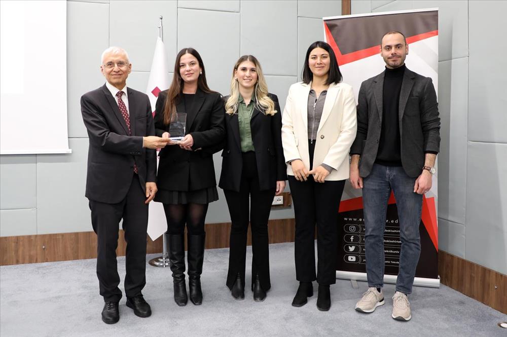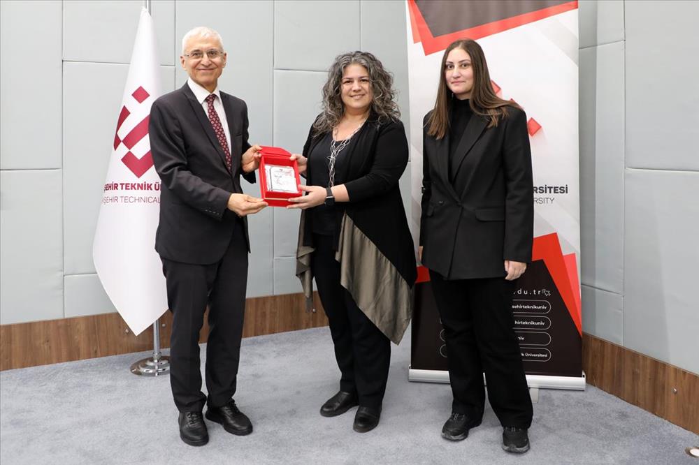 Program, ESTÜ Akademi Programları paydaşlarına plaket takdimi ile devam etti. Programa katkı sunan firma temsilcilerine ve akademisyenlere plaketleri, Rektör Prof. Dr. ÖZCAN tarafından takdim edildi.