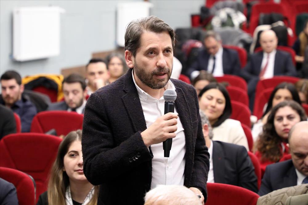ESTÜ Kurumsal İletişim Biriminden Öğr. Gör. Dr. Fatma Nur DEMİR ALADA’nın sunuculuğunu üstlendiği programın açılışının ardından söz alan Kariyer Gelişimi ve Öğrenci Destek Birimi Müdürü Doç. Dr. Emre Çimen, Eskişehir Teknik Üniversitesi’nde yürütülen Akademi Programlarının öğrencilerin kariyer gelişiminde önemli bir tamamlayıcı rol üstlendiğini vurguladı. Akademi Programlarının yalnızca akademik bilgi aktarımıyla sınırlı kalmadığını belirten Doç. Dr. ÇİMEN, bu yapıların öğrencilerin mesleki farkındalık kazanmalarına, sektör beklentilerini erken aşamada tanımalarına ve kariyer planlarını daha bilinçli şekilde oluşturmalarına katkı sağladığını ifade etti.