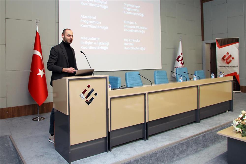 Kariyer Gelişimi ve Öğrenci Destek Birimi Akademi Programları Koordinatörü Arş. Gör. Dr. Orkun ERGÜRHAN tarafından 2025 Yılı ESTÜ Akademi Programları Değerlendirme Sunumu gerçekleştirildi. Birim Müdür Yardımcısı Öğr. Gör. Nazan GÜL tarafından yapılan sunumda ise yıl boyunca yürütülen Akademi Programlarının kapsamı, öğrenci katılım oranları, sektör iş birlikleri ve elde edilen kazanımlar paylaşıldı.