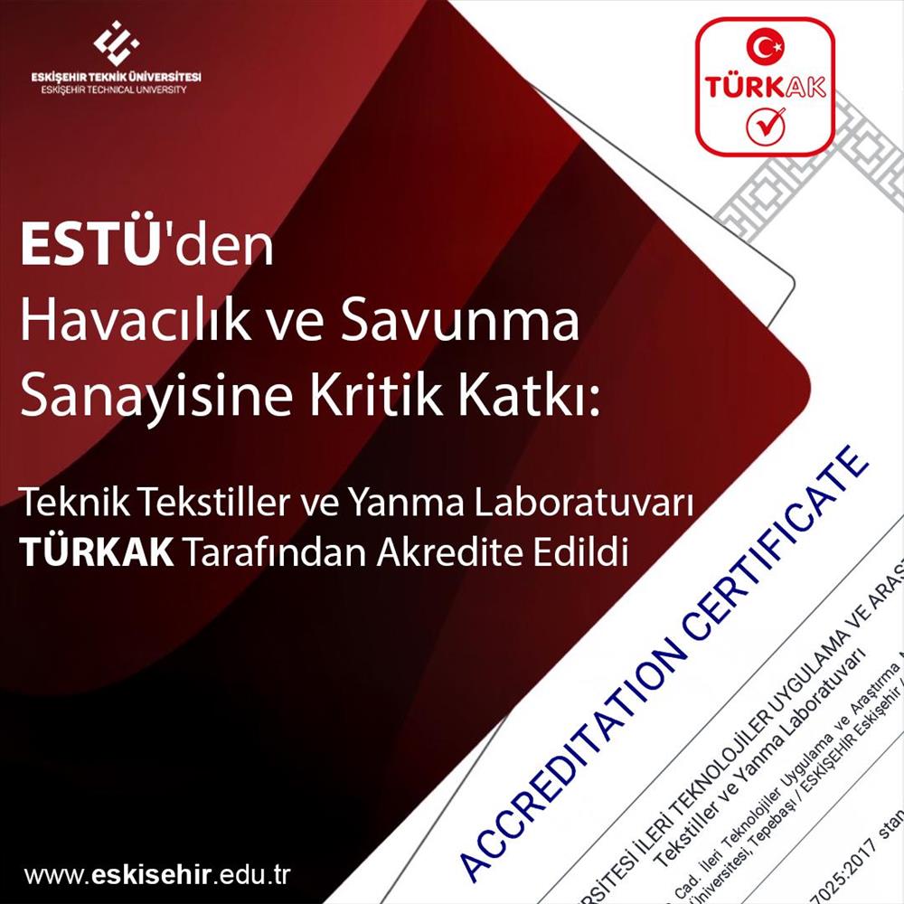 Eskişehir Teknik Üniversitesi (ESTÜ) İleri Teknolojiler Uygulama ve Araştırma Merkezi (İTAM) bünyesinde faaliyet gösteren Teknik Tekstiller ve Yanma Laboratuvarı, TÜRKAK TS EN ISO/IEC 17025:2017 standardı kapsamında yürütülen akreditasyon sürecini başarıyla tamamlayarak uluslararası yetkinliğini tescilledi.