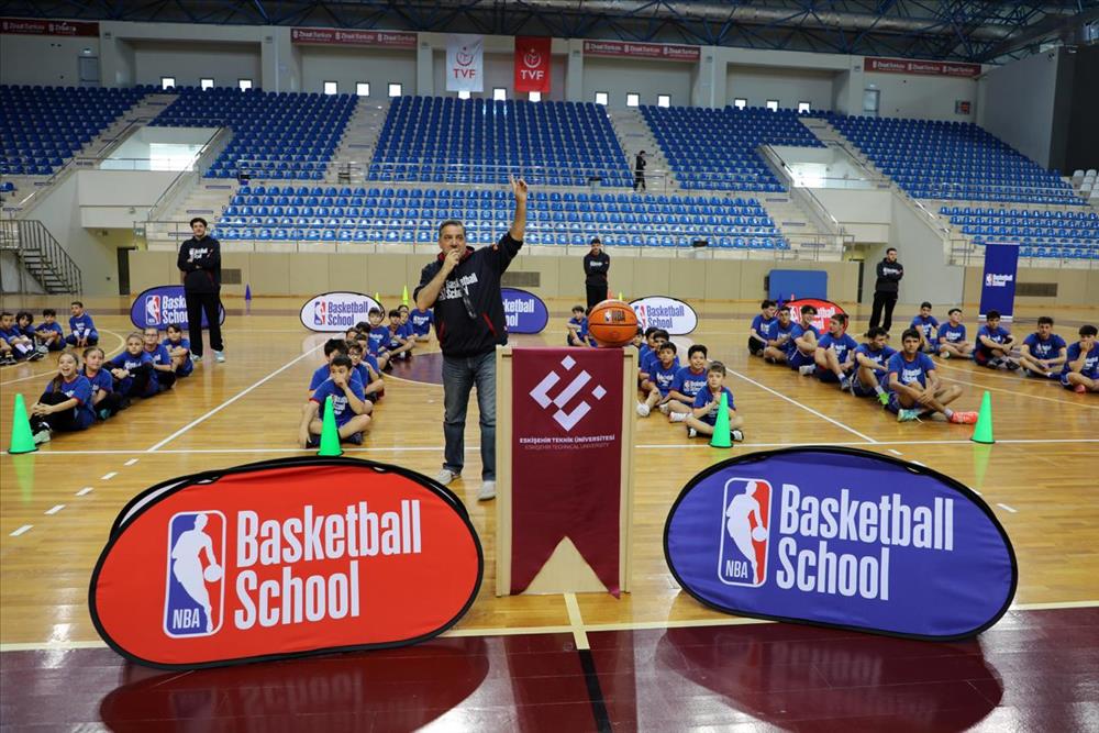 Eskişehir Teknik Üniversitesi (ESTÜ) İki Eylül Kampüsü Spor Salonunda NBA Basketball School Eskişehir organizasyonunun açılış etkinliği gerçekleştirildi. Dünyanın en büyük basketbol organizasyonu olan National Basketball Association (NBA)’in resmi altyapı eğitim programı NBA Basketball School kapsamında 14 Mart 2026 Cumartesi günü düzenlenen etkinliğe; ESTÜ Rektörü Prof. Dr. Adnan ÖZCAN, Genel Sekreter Cengiz KAÇAL, Spor Bilimleri Fakültesi Dekanı Prof. Dr. Serdar KOCAEKŞİ, Dekan Yardımcıları Prof. Dr. Arif YÜCE ve Dr. Öğr. Üyesi Türkan Nihan SABIRLI, Spor Bilimleri Fakültesi Öğretim Üyesi Prof. Dr. Veli Onur ÇELİK, Bilnet Okulları Eskişehir Kampüsü Okul Müdürü Seval ÇINAL YÜRÜK ile çok sayıda sporcu ve davetli katıldı. Açılışın konuğu olarak WNBA tecrübesine sahip NBA Basketball School Türkiye Baş Antrenörü Gergena BRANZOVA katıldı.