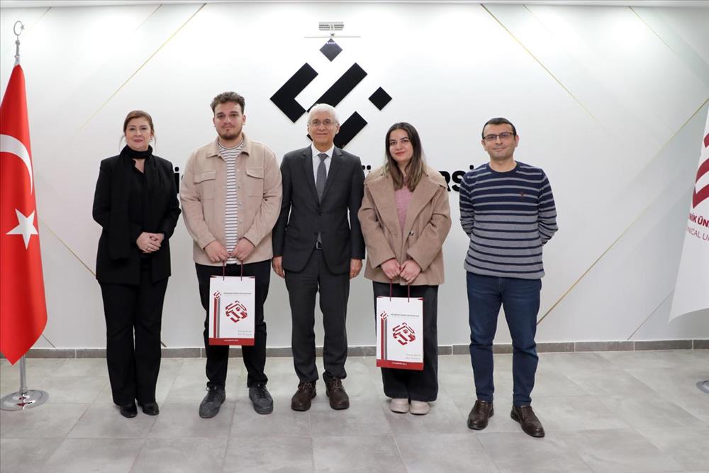 Öğrenci ekipleri, Rektör Prof. Dr. Adnan ÖZCAN tarafından tebrik edildi. Ziyaret sırasında öğrencilerle projeleri hakkında bilgi alışverişinde bulunan Rektör Prof. Dr. ÖZCAN, başarılarından dolayı öğrencileri ve akademik danışmanlarını tebrik ederek şu ifadeleri kullandı: