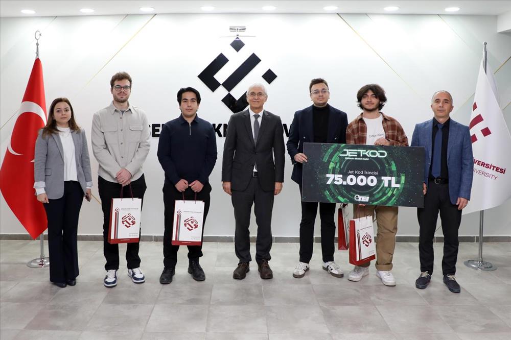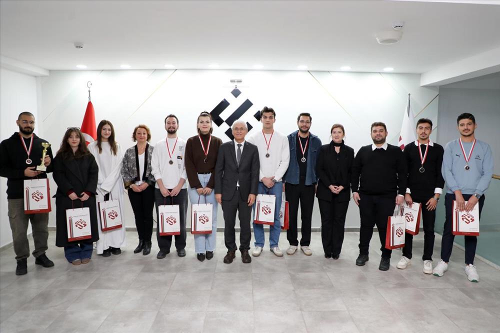Ziyarette; JET KOD Hackathonda ikincilik derecesi elde eden Mühendislik Fakültesi öğrencileri Abdullah Alp ERŞAHİN, Doğukan Ataberk GÖNÜLLÜ, İsmail ÇINAR ve Emirhan ÇAKIR; UNESCO Ohrid Ancient Theatre Uluslararası Mimari Yarışmasında Community’s Choice Award (Topluluk Tercihi Ödülü) kazanan Mimarlık ve Tasarım Fakültesi öğrencileri Şerife Yeter BIYIKLI, Furkan KESER, Muzaffer Alperen SEZER, Yavuz Selim BİLGİ, Onur Alp ÖĞMEN, Ahmet Utku CAN, Kerem AĞIRMAN, Hasan Emirhan CAN, Amine Belemir TARIM ve Gülsüm NAGİZADE ile Avrupa Birliği finansmanı, UNDP ve Türkiye Belediyeler Birliği iş birliğinde yürütülen “Bugünün Gençleri Geleceğin Meslekleri” projesi kapsamında düzenlenen Fikrim Gelecek: Gençler Arası Dijital Çözümler Hackathonunda Yerel Düzeyde En Uygulanabilir Dijital Çözüm Birinciliği ödülünü kazanan Bilişim Teknolojileri Meslek Yüksekokulu öğrencileri Furkan BAŞTEPE ve Merve SULUBAHÇE yer aldı.